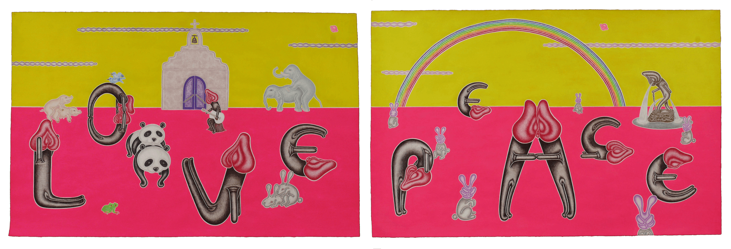 <Love> <Peace> 25.5x40, Acrylic and Color Pencil on Paper, 2010